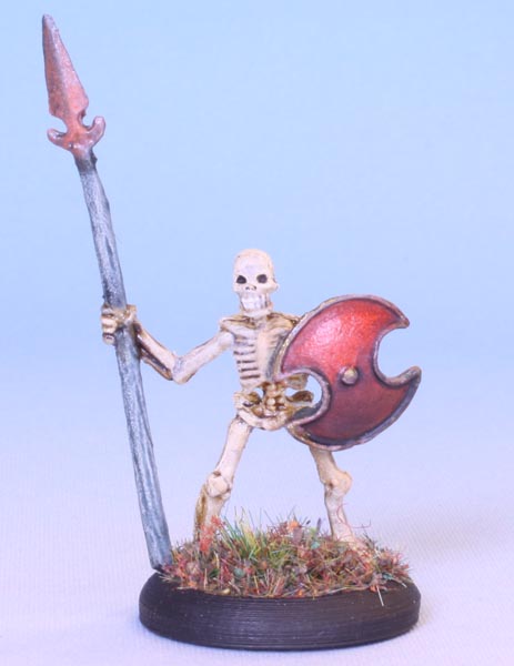 This skeleton has the first bones SKU code of 77001. It is currently sold in packs of three identical skeletons. I believe I got this specific model as part of a Halloween gift in a mailorder shipment from Reaper some years ago. I had this model originally slated to be used in a diorama base for the colossal skeleton, but that did not materialise. It has been lying about the place ever since.