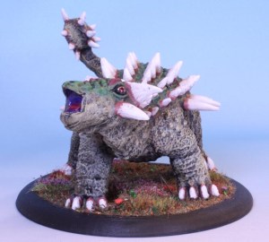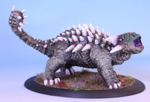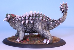 A plant eating 4-ton tank armed with a deadly morning star tail, an armoured hide with spikes: a fantasy version of an Ankylosaur. The Clubtail is somewhat larger than the fossil record of Ankylosaur supports. Also the spikes are overstated in comparison. A lot.