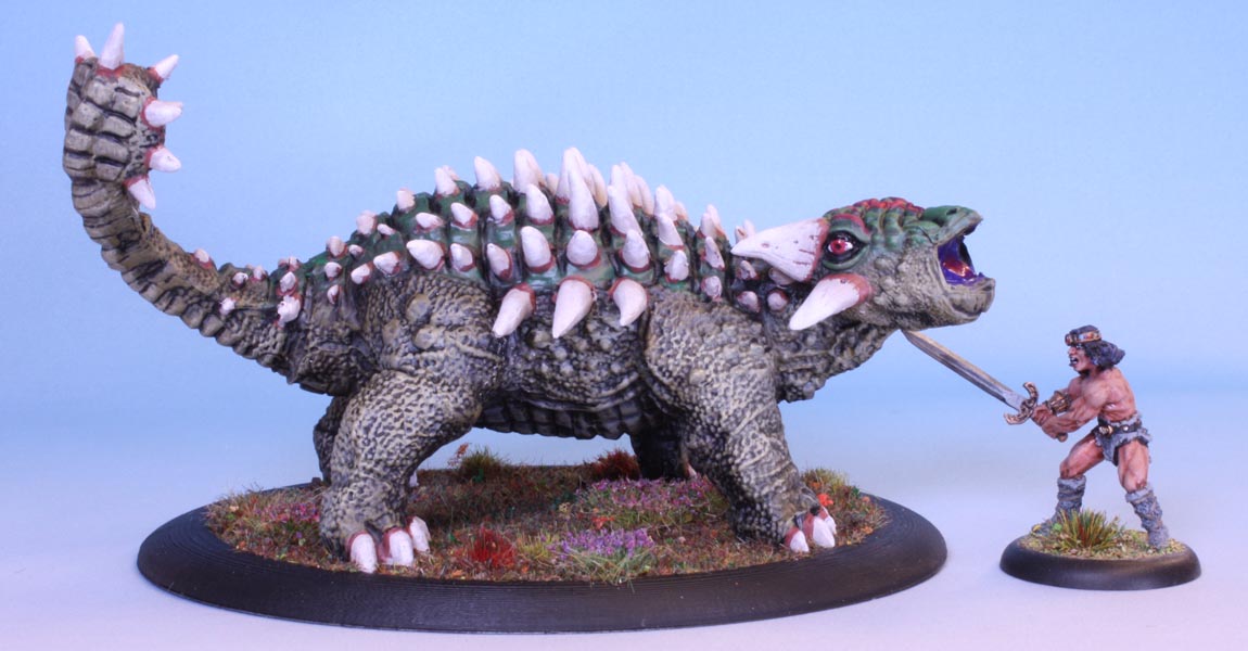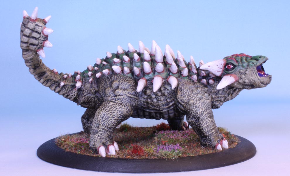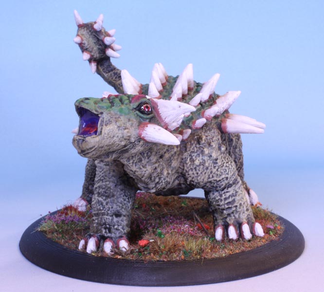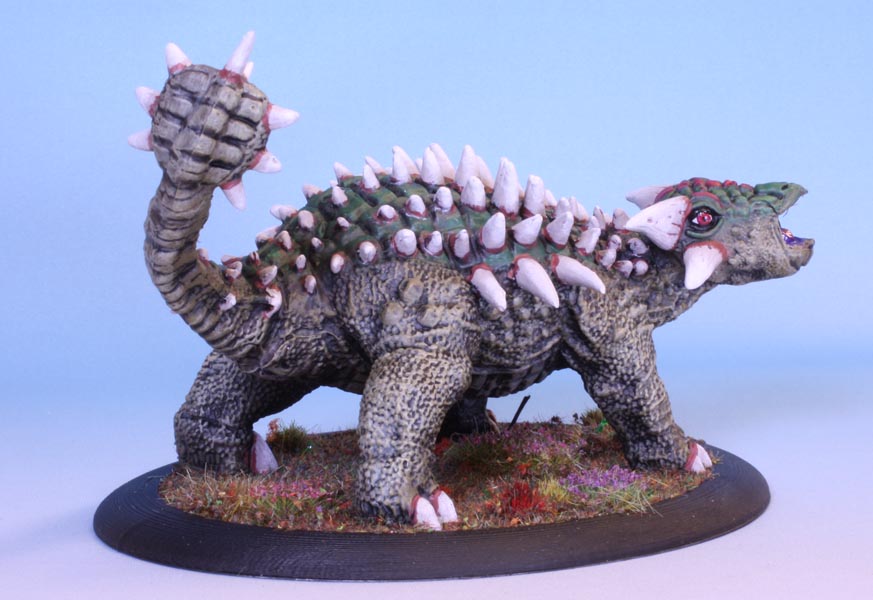 A plant eating 4-ton tank armed with a deadly morning star tail, an armoured hide with spikes: a fantasy version of an Ankylosaur. The Clubtail is somewhat larger than the fossil record of Ankylosaur supports. Also the spikes are overstated in comparison. A lot.