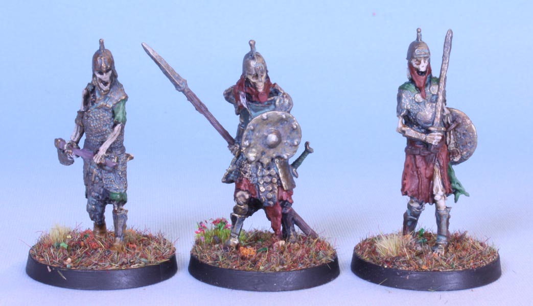 These are your more typical skeleton warriors. The flesh has long since rotted away. They are kitted out as soldiers with chainmail, helmets, armour plates, round shields and infantry weapons.
