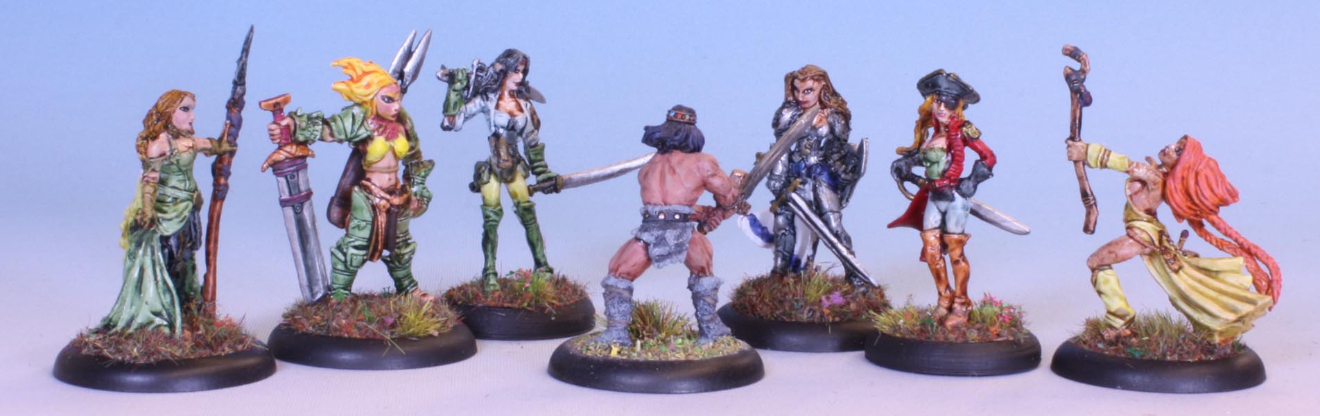 The key is to get some paint on the models and not be too fussy about anything. Laissez-faire! Sure, it’s lazy painting, so what? These are models that would never get painted otherwise. (And they still look better than Mage Knight prepaints. Admittedly, that is mainly because I care enough to paint the eyes.)”