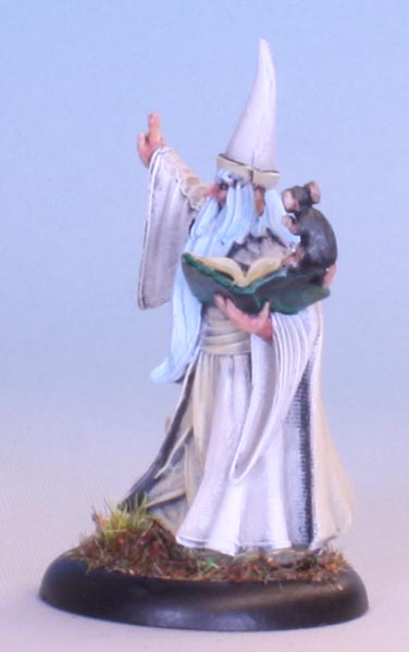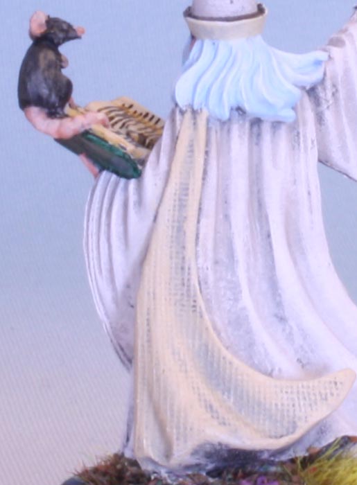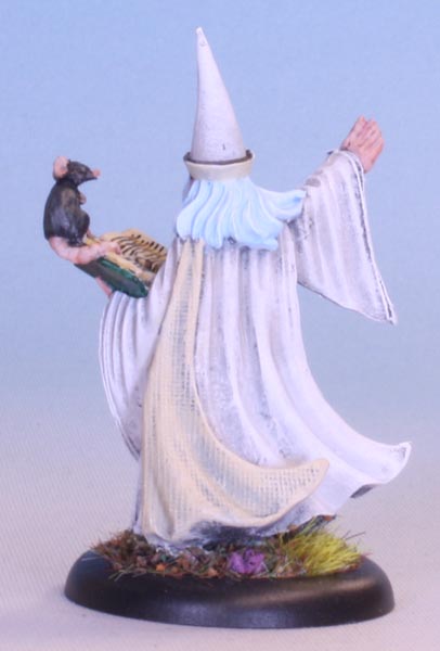aka 30002 Darius the Wizard, one of the brand spanking new miniatures cast in the Bones USA material. This mini has some pretty impressive detail going on. Look for example at the texture on the inside of the cloak, here shown on the back: