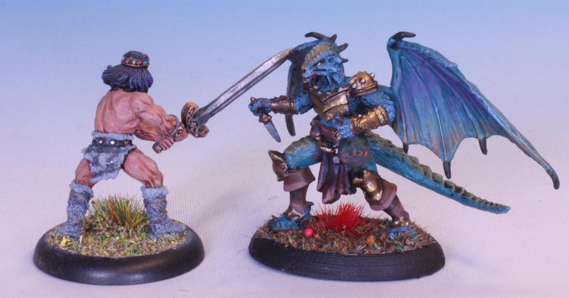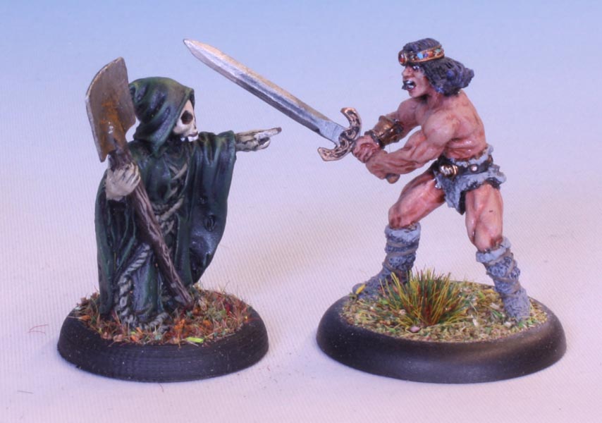 Two from a pack of three. The third one in the pack is stylistically very different from the two others (I have not not painted that one yet). This third-mini-is-the-odd-one-outin a pack is mysteriously common with kickstarted bones when they go to retail.