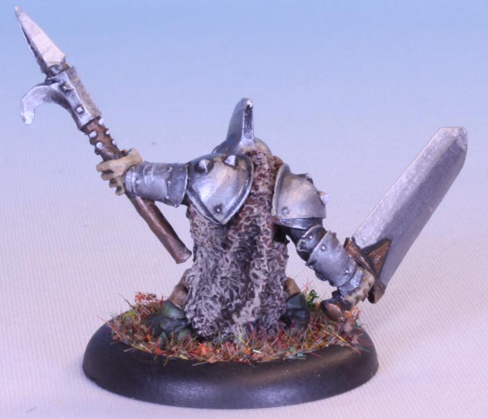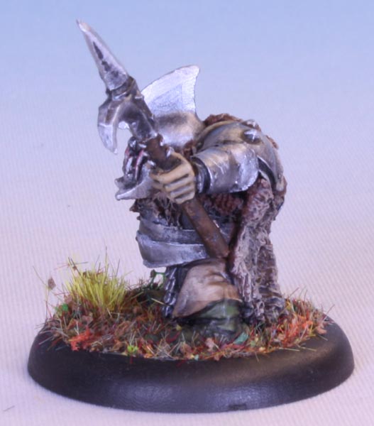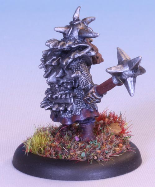 This one comes from yesteryear: a Dwarf Blood Totem Keeper from the game Chronopia. This miniature originally came in a boxed set together with a Blood Totem, which is a great big minotaur-like monsterbeastthingy. The Blood Totem was produced with a resin body and metal head, arms and tusks (as far as I remember). I first got a miscast and received a new box, which left me with an extra keeper. This one. It will do nicely as a classic chaos dwarf.