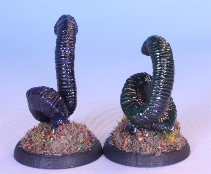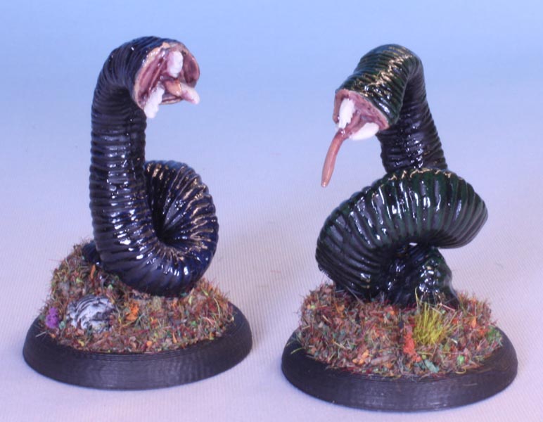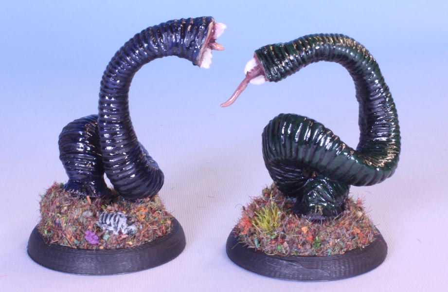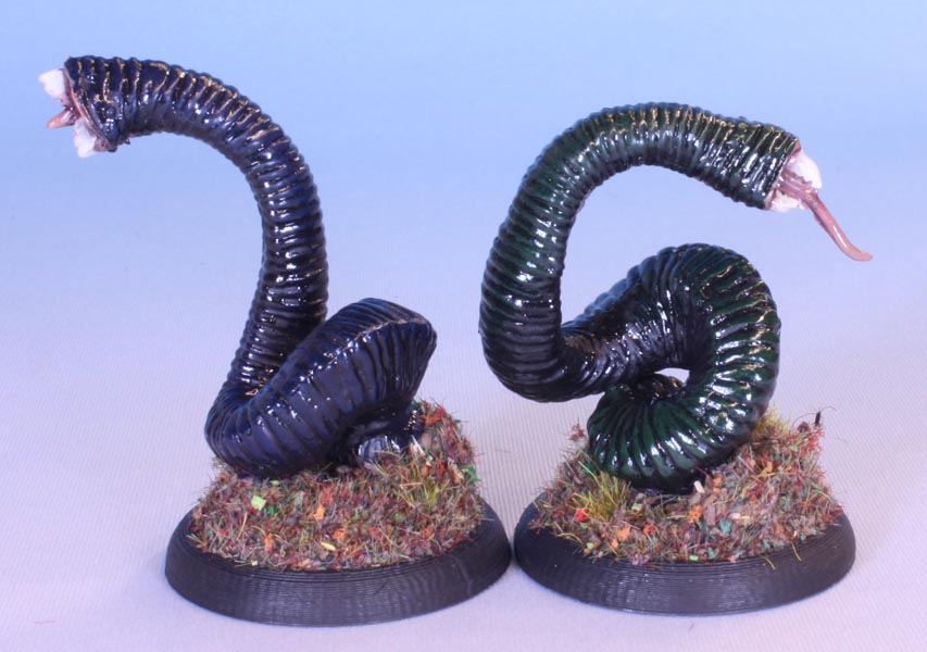 These are 44031 Giant Leeches, also from the Bones 4 Dreadmere expansion. I find that clear varnish, especially gloss, is really great for making simple and effective effects and therefore effective paintjobs. Also, wet slime.