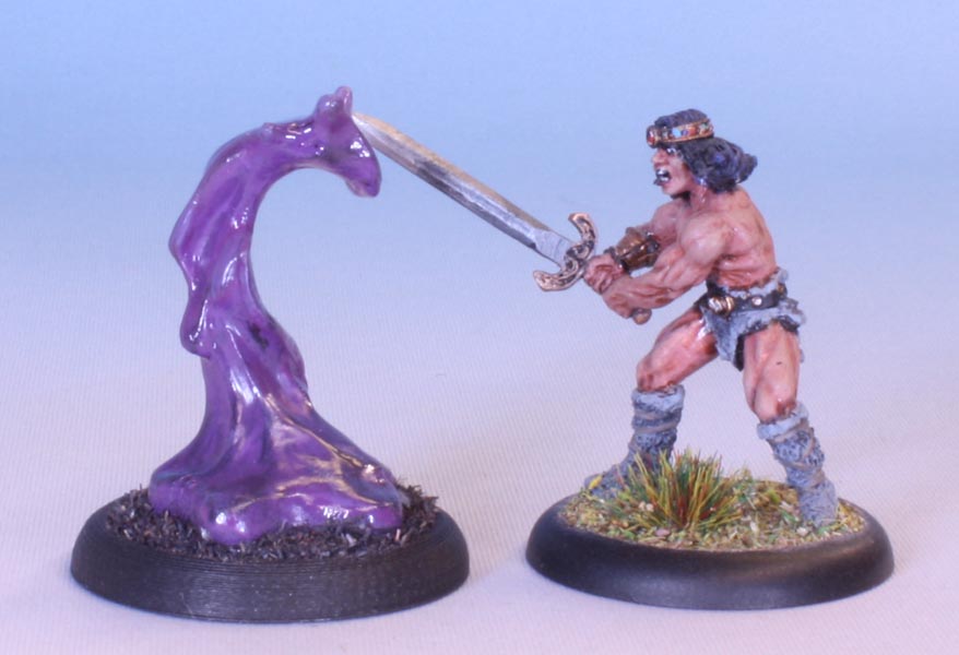 Note the shapes of the bases’ edges in the Conan picture. The mouslings are mounted on Reaper 30mm round “display base”, while Conan is mounted on D&G 30mm round “lipped base”.