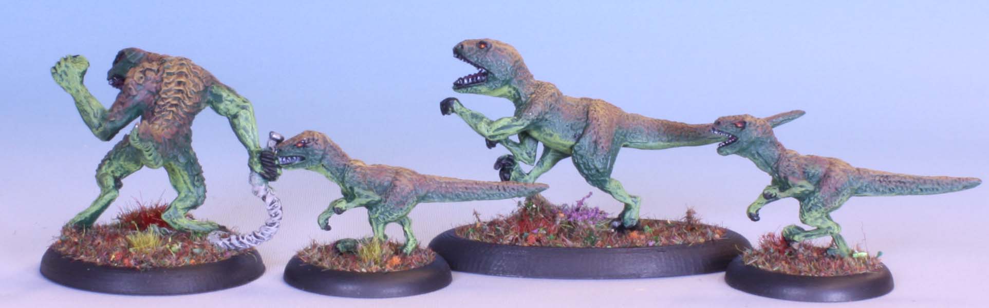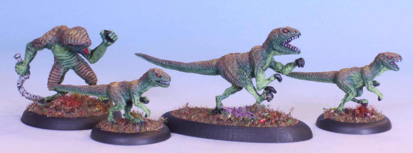 Some more minis salvaged from the Lead Rot. These are Harlequin Miniatures Greater Lizardmen ca 1997. The larger raptor originally had a rider, but that model succumbed to the rot and has been discarded. The raptor is excellent on it’s own though.