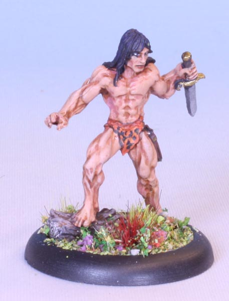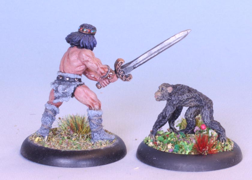 Here is a good example of the inconsistent scale between many (older) Reaper miniatures. Conan is a lot beefier than Tarzan, even though they should be about the same size.