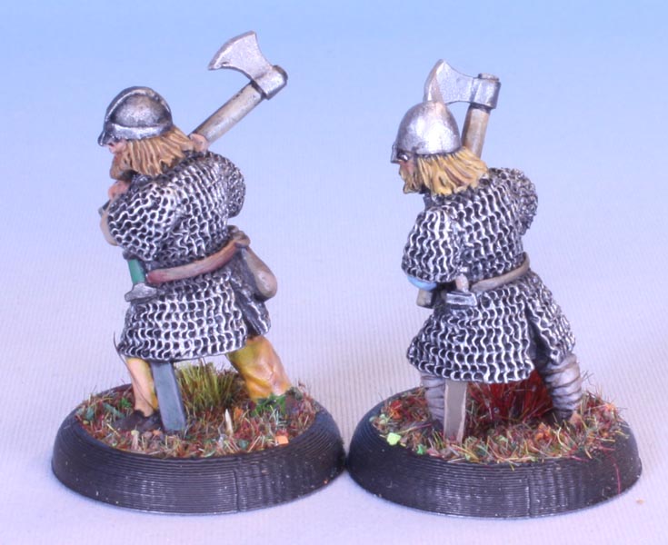A pair of axe wielding warriors from the Dark Ages painted for the historicalalong. I don’t have many historical miniatures, but I do have a few of these types here that I bought second hand some years ago. I honestly do not know what make they are, or even what they are called. By their equipment and general look I would say that they are from the European Dark Ages: Vikings, Saxons or similar.