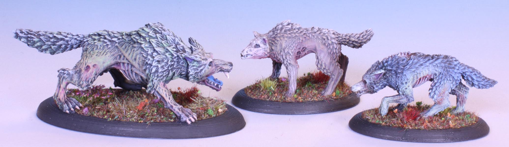 The Dreadwolves are made in Bones Black hard PVC and I based them on 50x30mm bases.