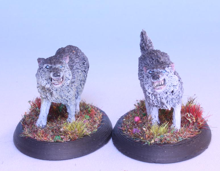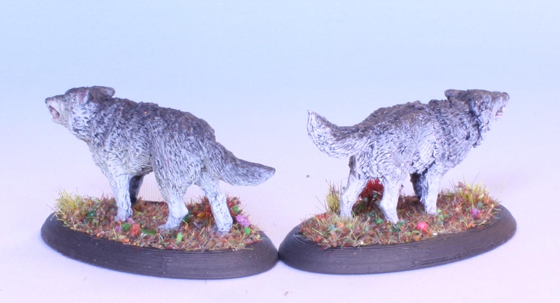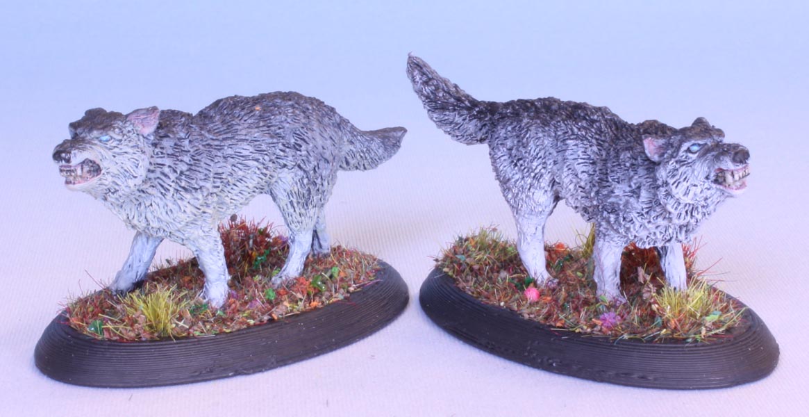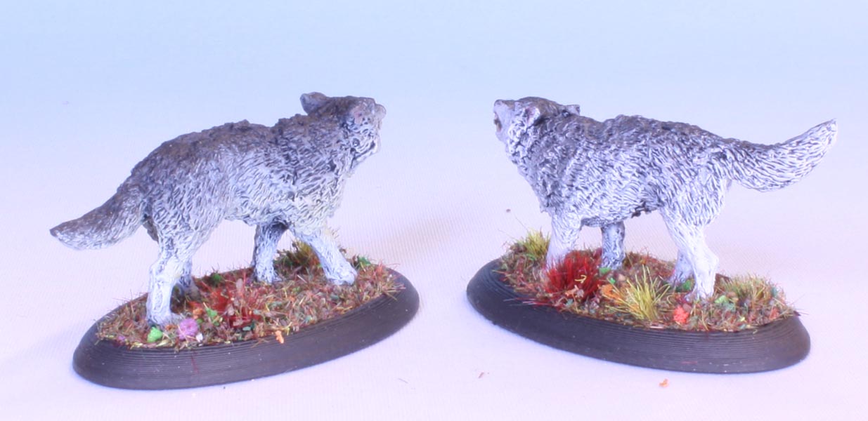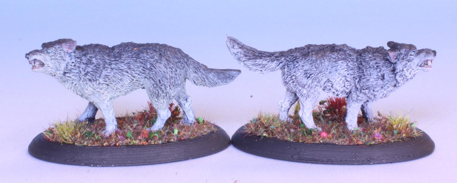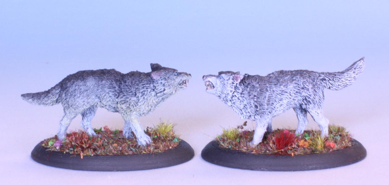 The old metal dire wolves have been recast into the Siocast Bones USA material together with a bunch of other older minis.