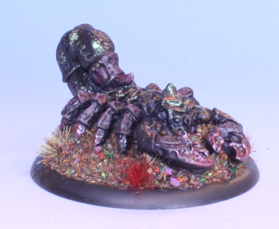 This is a Grendel Productions Giant Scorpion from the 10049 Dungeon Beasties pack, currently still available from Scotia Grendel. I bought it back in the 90s when they were new.