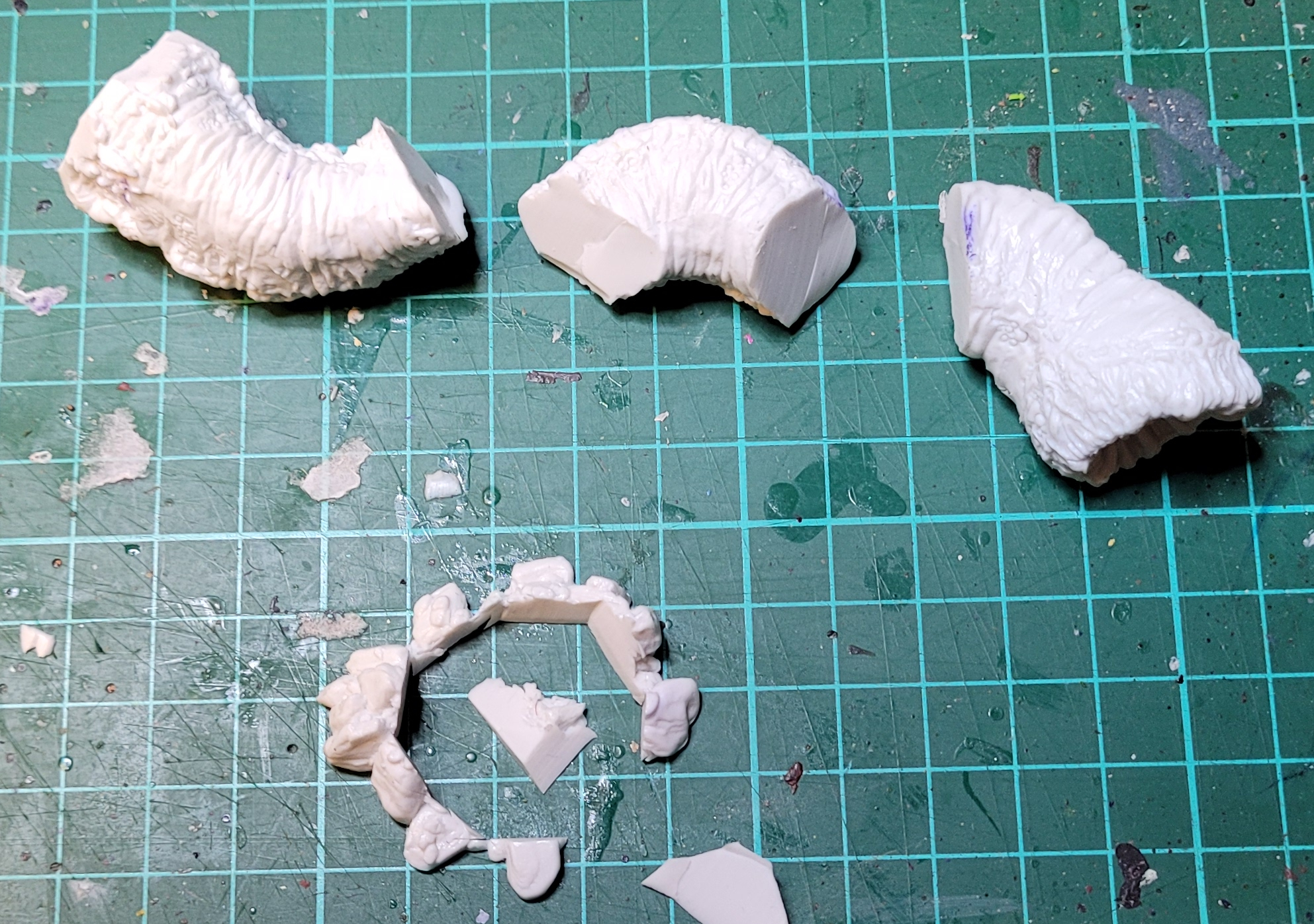 Bones Classic white PVC – not even remotely strong enough to support the weight, so it also has a metal tree to keep it upright. Which solves the problem of the entire model listing. But still…more problems.