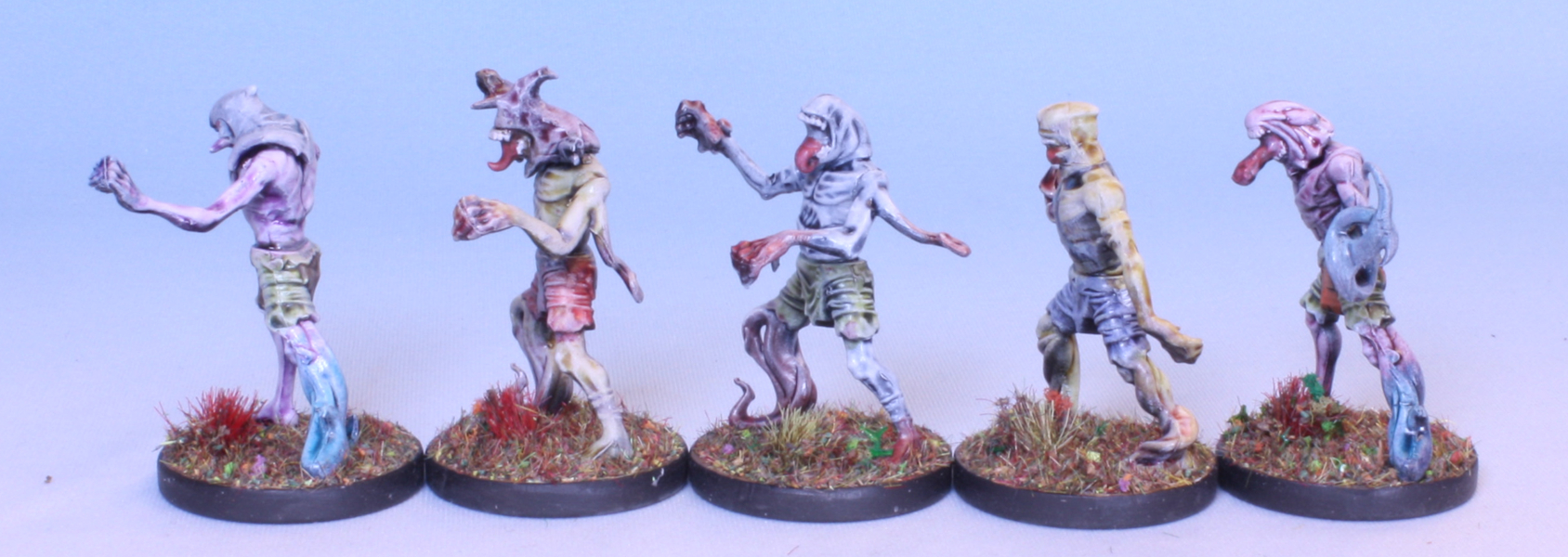 A very quick paint job using contrast paints later, and I have some weird mutants or zombies or mutant zombies.