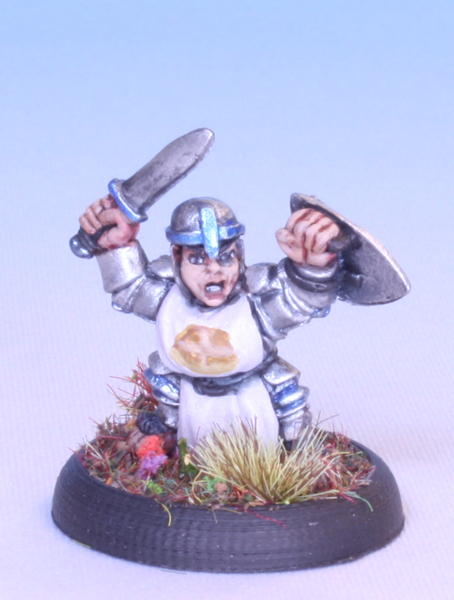 Another older mini, this is Cedric the Doughty – halfling Paladin from the 2013 Oathsworn Miniatures “Heroes” kickstarter. This was before Oathsworn found their calling with the Burroughs and Badgers miniatures.