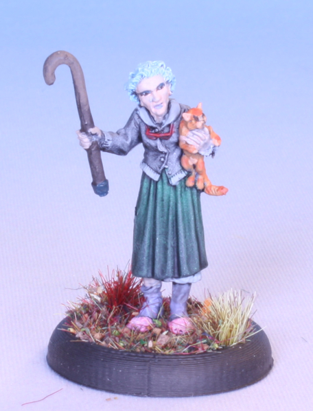 There are supposed to be a bunch of little cats all around her feet, but they seem to have scampered off somewhere.
