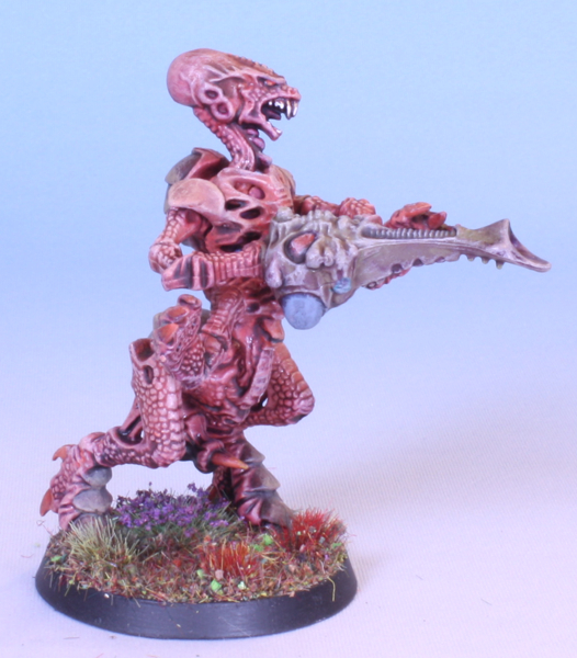 Released by Games Workshop in 1990. This was a game I played quite a lot back in the day, exploring the intestines and guts of Tyranid hive ships with the early versions of Space Marine Scouts. I had a single tyranid warrior left to paint for some reason. So, here it is.
