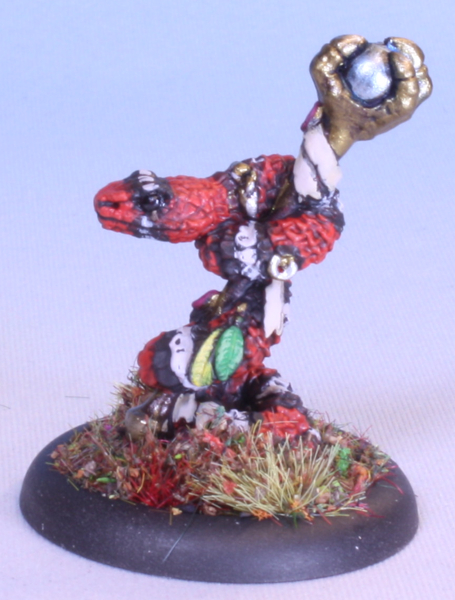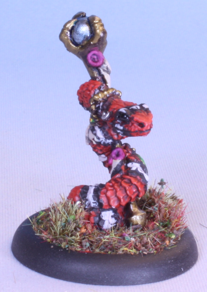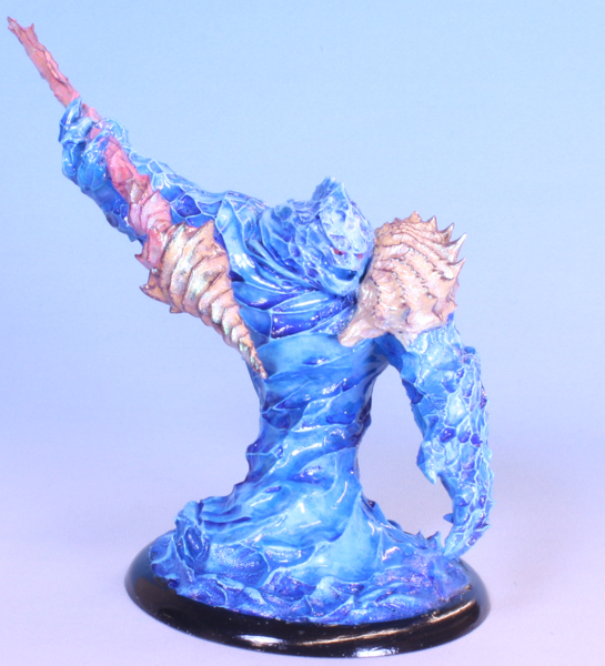 I used three different colour shifting paints on the conch and spear-thingy, plus some ivory, dark purple and brown. Gloss varnish make everything look wet.