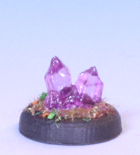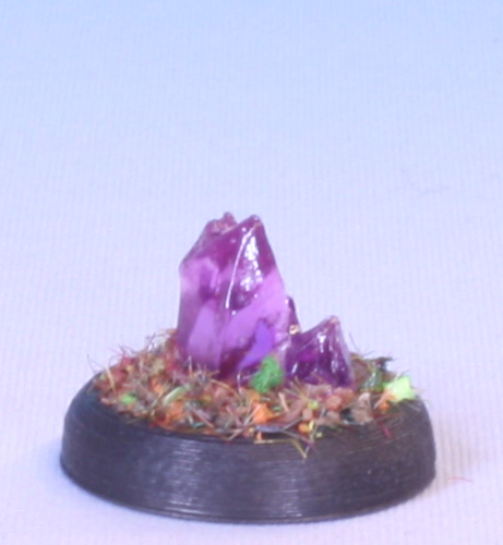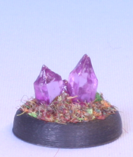 A little patch of crystals from the Bones 5 Darkreach expansion. Made in transparent purple.