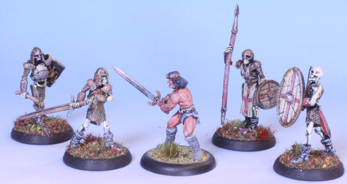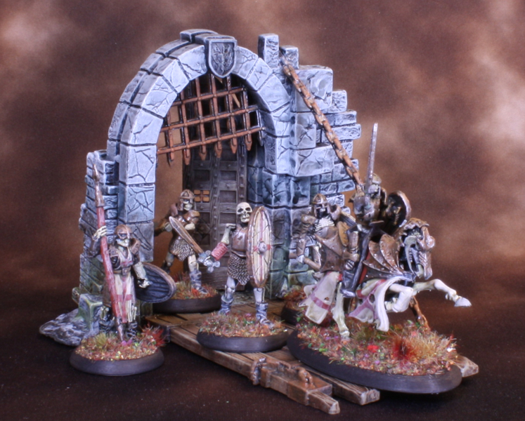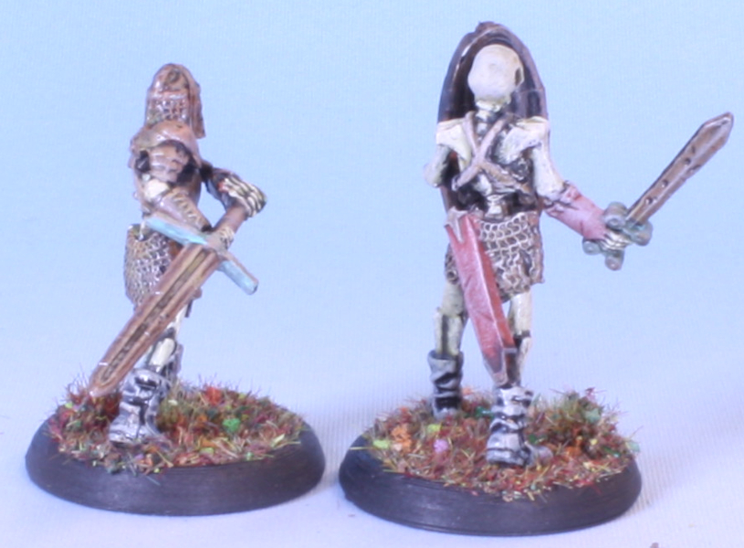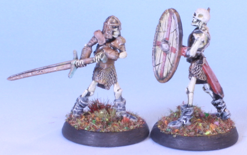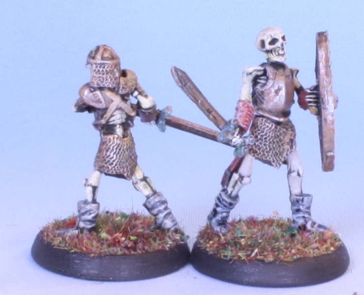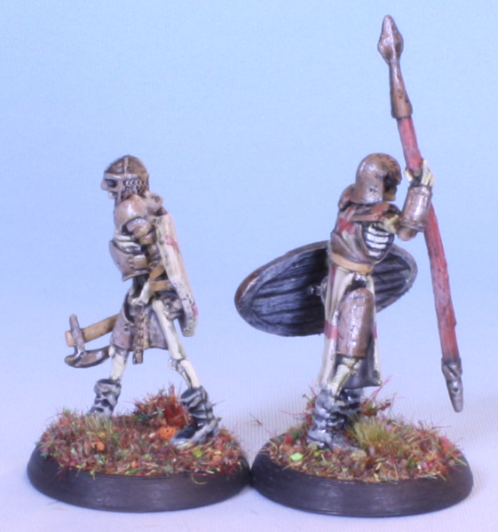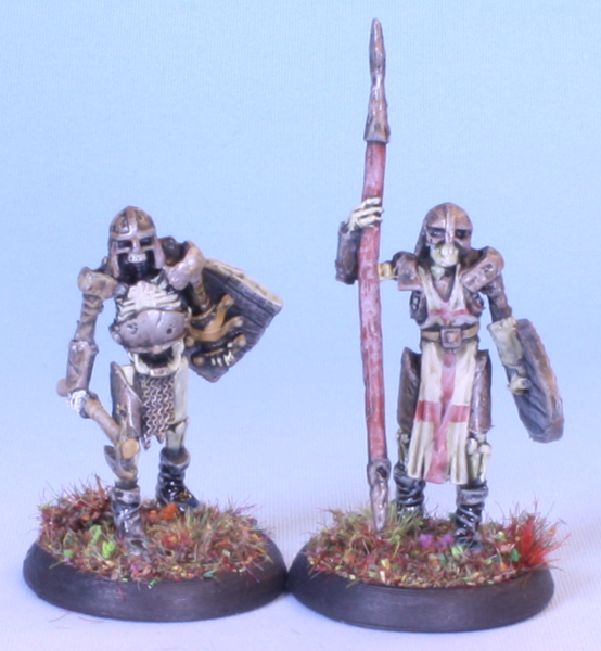 The footmen skeletons from the Encounter at Gallowgard encounter set add-on from the Bones 5 kickstarer. Done up in my Lost Legion undead army livery.