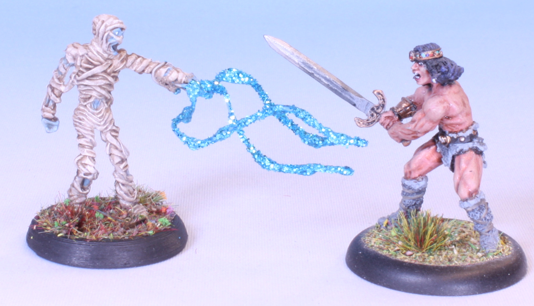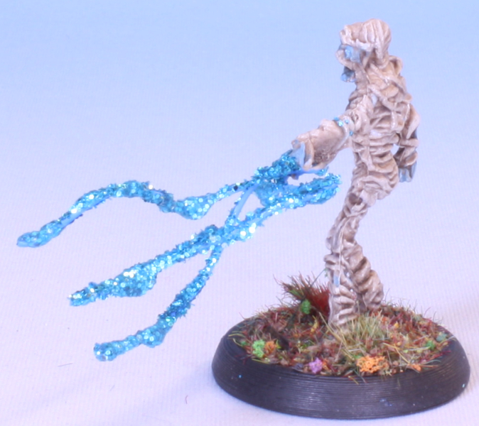 The spell or lighting effect was done with some florist wire, superglue and glitter.