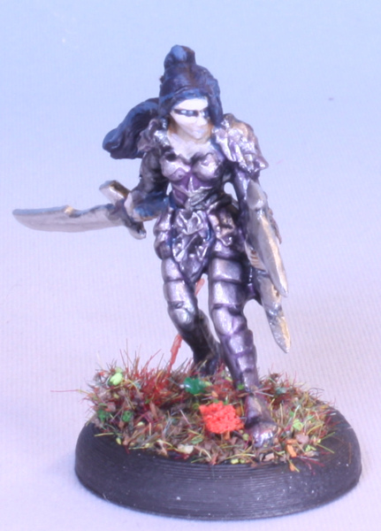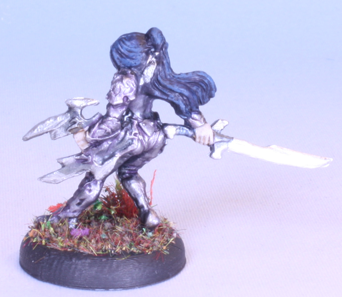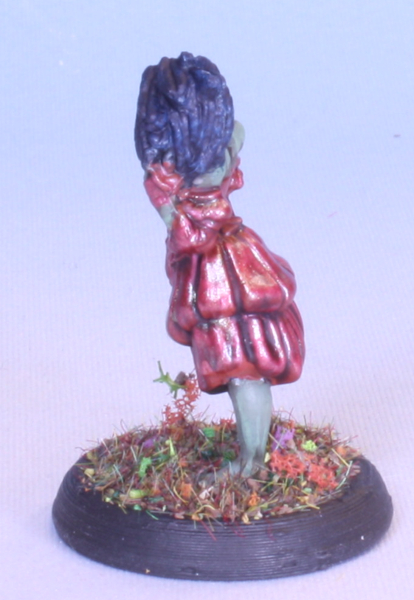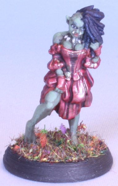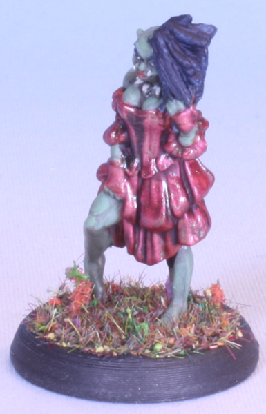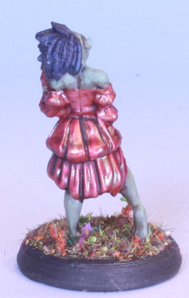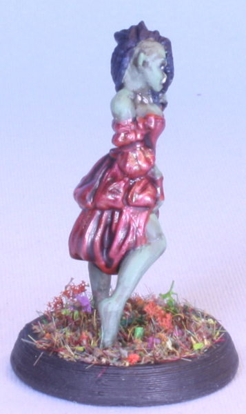 I painted the dress with dark red, red metallic paint, red/turquoise colorshift, and some silver mixed in for highlights. The colorshift caused the slightly too glossy finish.